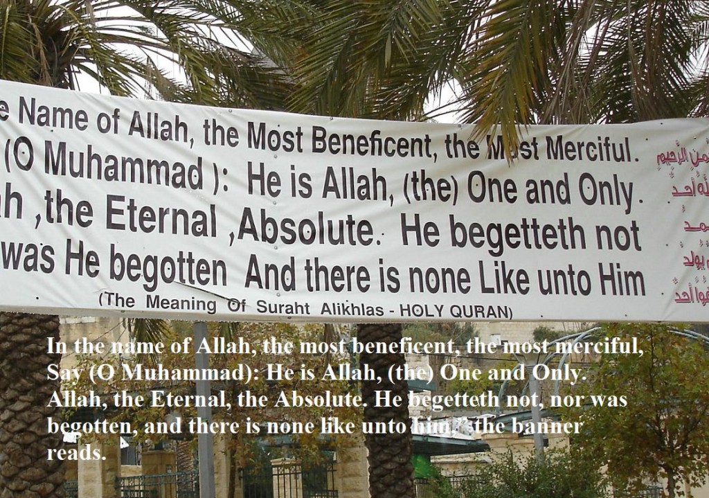 “Proclaim, 'He is the One and only GOD. The Absolute GOD. Never did He beget. Nor was He begotten. None equals Him.” (Sura 112:1-4)