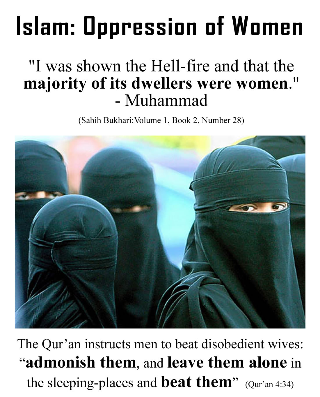[Muhammad said], "O women! Give to charity, for I have seen that the majority of the dwellers of Hell-Fire were women." The women asked, "O Allah’s Apostle! What is the reason for it?" He said: "O women! You curse frequently, and are ungrateful to your husbands. I have not seen anyone more deficient in intelligence and religion than you. O women, some of you can lead a cautious man astray." (Sahih Al-Bukhari, Dr. Muhammad Matraji, tr. (New Delhi: Islamic Book Service, 2002), Number 1462.)